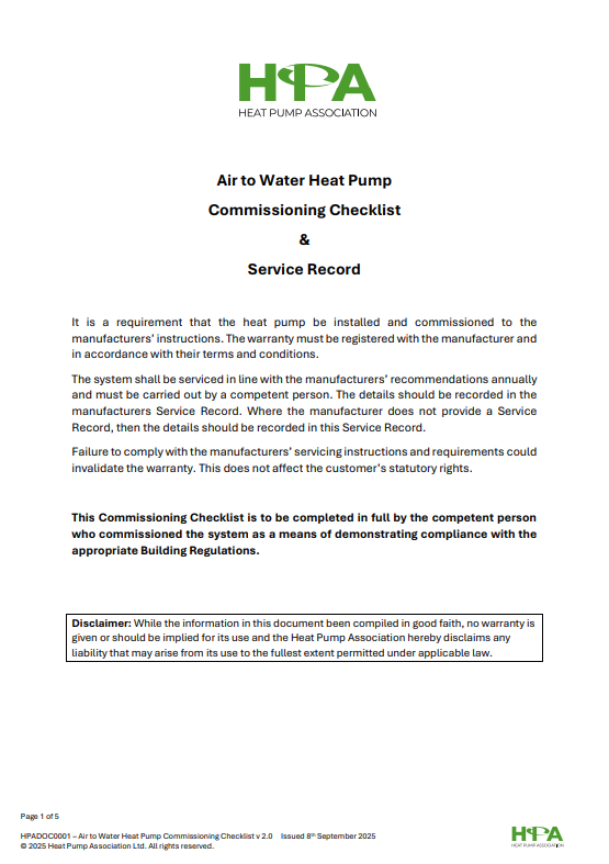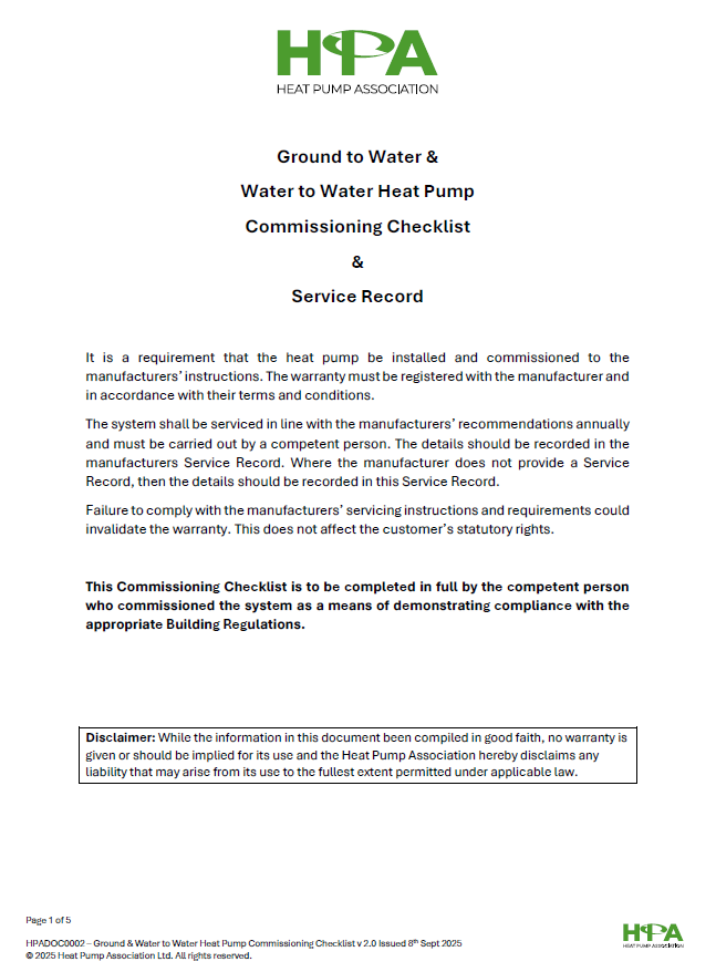 Ground to Water & Water to Water Heat Pump Commissioning Checklist & Service Record
